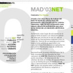 Documentación Exposiciones Webs(2003) MAD’03 por marcela30/10/202330/10/2023El MAD’03 llenará de arte experimental las calles de la capital _ Edición impresa _ EL PAÍS Visitas: 1